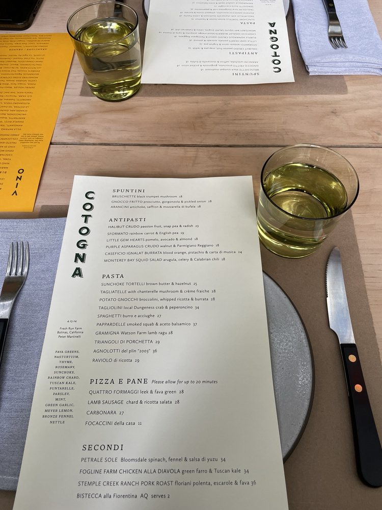 Cotogna, located in San Francisco, offers a delightful Italian dining experience with various amenities like outdoor seating, reserved parking, and attentive service. The menu features must-try dishes like butter corn pasta and blue fin crudo, highly recommended by satisfied customers. Vegetarians can also indulge in flavorful pasta and pizza options. The staff is knowledgeable about the menu, adding to the overall dining experience. The restaurant boasts a warm ambiance for both indoor and outdoor dining, with heaters and blankets provided for outdoor seating. Cotogna is praised for its high-quality food and excellent service, making it a popular choice for a special night out. Reservations are recommended due to its popularity among diners. Overall, Cotogna stands out for its delicious food, attentive staff, and inviting atmosphere.